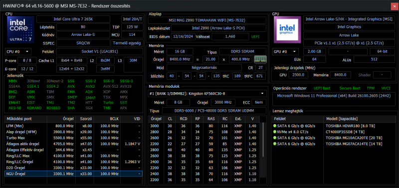 De a kisebb gép - Ultra 7 + RTX 5080 mellett is 64GB volt és most még 64GB-ból sincs olyan kit, ami sokaknak jó lenne - főleg az új Ultra procik mellé.Költői kérdés: Szándékosan megfogják az Ultra procikat ezekkel a memóriákkal, vagy esetleg már tudnak valamit (valamilyen Inteles / Bios javítás)? Vagy csak jobbnak tűnik a 64GB "papíron" (és eladhatóbb), mint a 48GB.