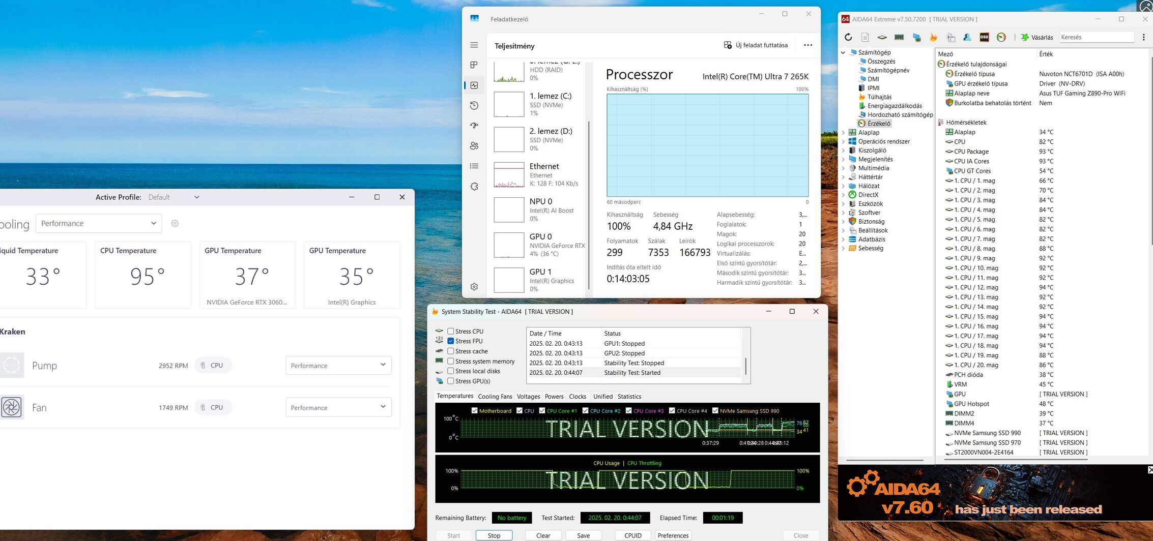 Most raktam össze egy új konfigot, tesztelgetem a rendszert és stabil minden, de az Aida stress tesztnél, ha külön futtatom az fpu stresst, azonnal fel megy a proci hőmérséklet 90 fokra és fölé. Pár percig futtattam, és nem nagyon ment feljebb, de nem mertem tovább hagyni. Kérdésem, hogy ez mennyire normális, úgy hogy egy NZXT Kraken 360 RGB vízhűtésem van.