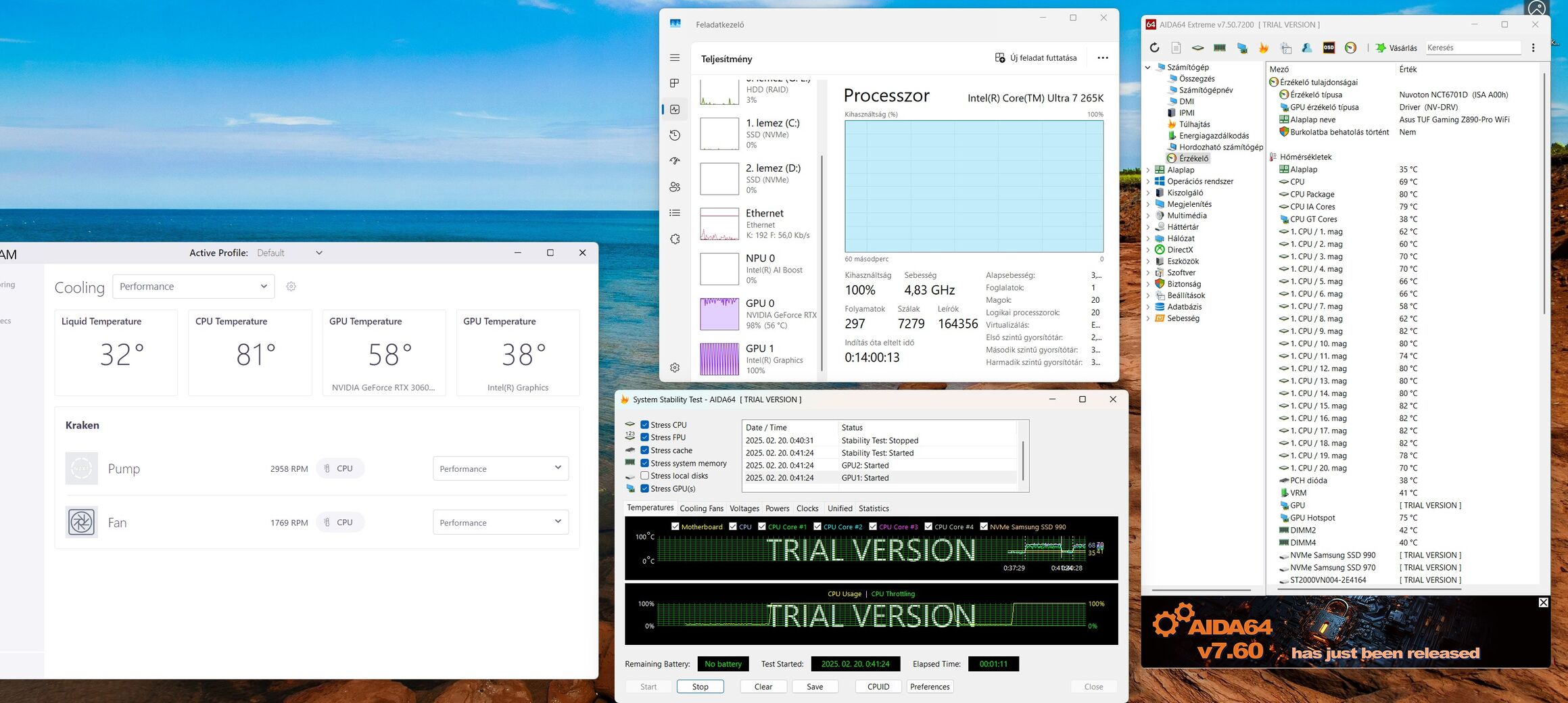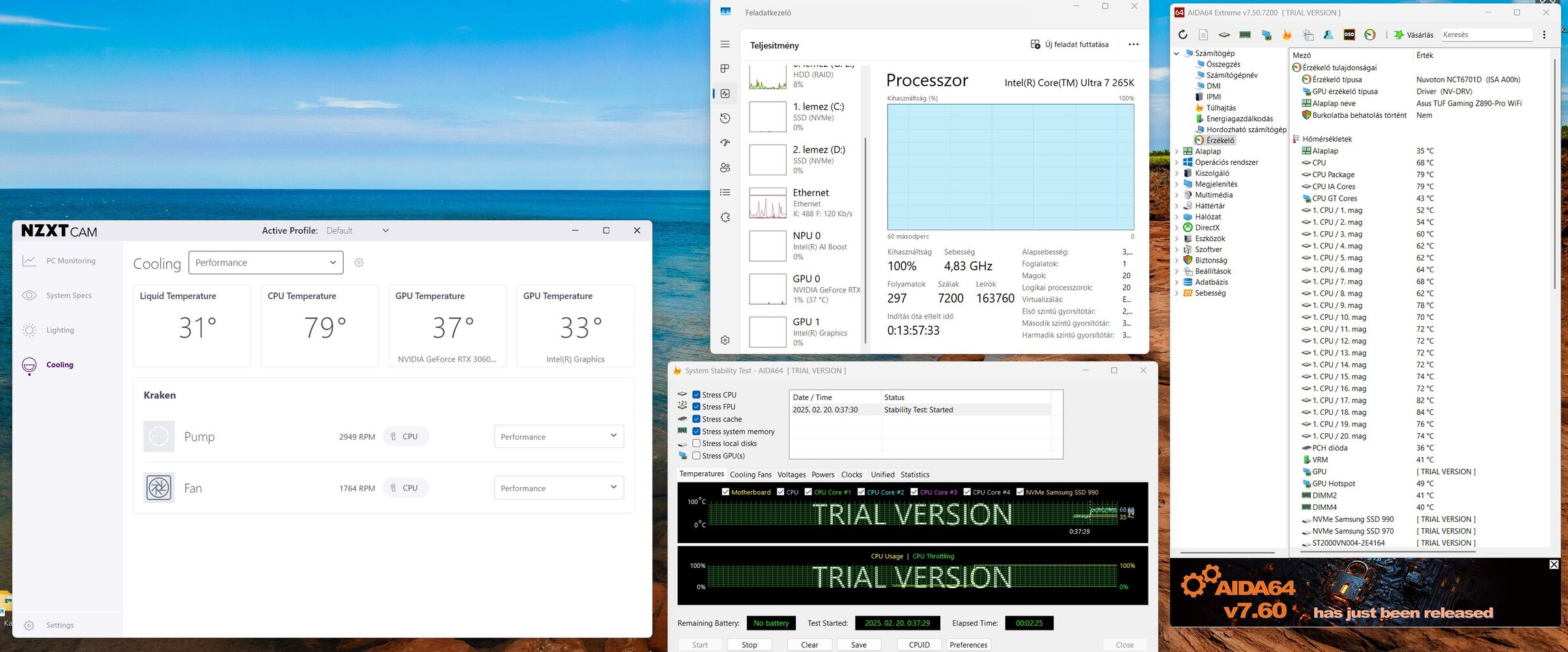 TUF+265K lett végül.Mivel 4K tévén 4080S-el játszok, ha esetleg játszok, így sztem kb mindegy, minden tesztet végignéztem a neten és 4K-ban elhanyagolható a különbség.