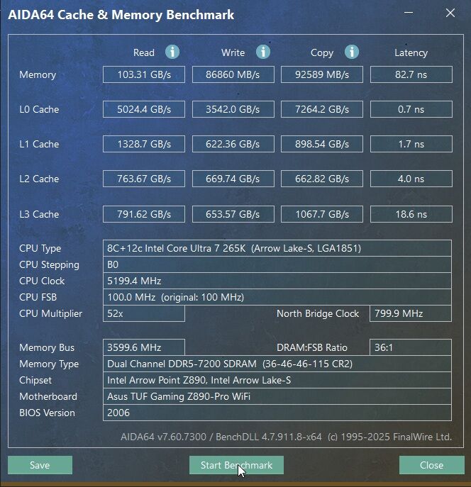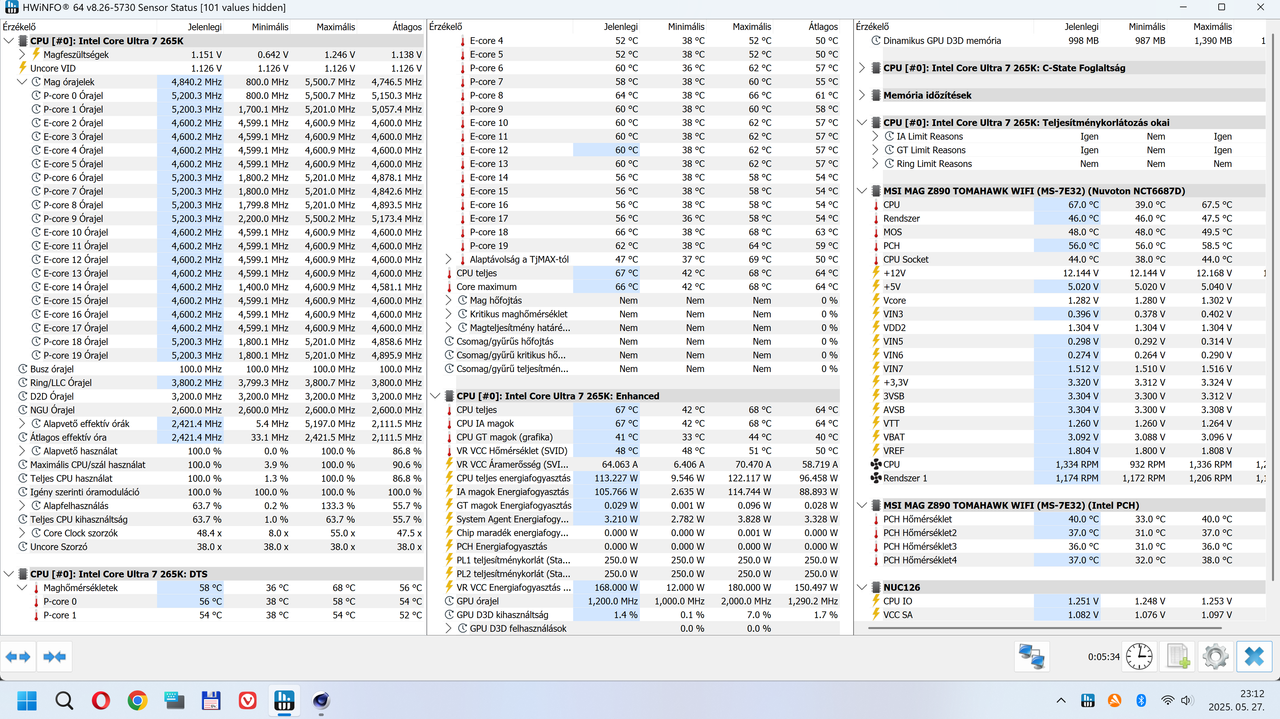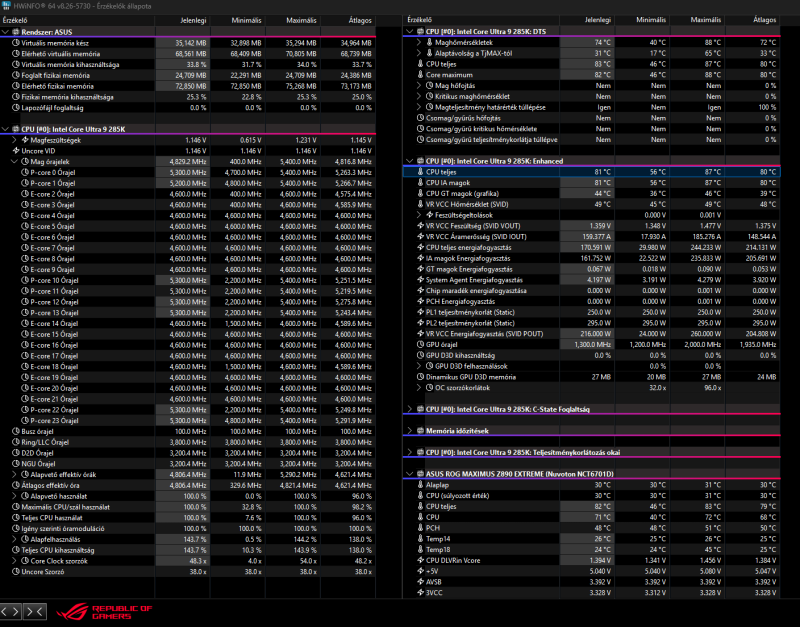 Csatlakoztam én is egy 265K | 2x48GB 7200/CL36 | Asus TUF Z890 Pro trióval.