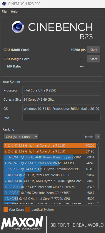 Beállítottam most már a RAM-okat is, így 8000 MHz-en futnak, Cinebench így már 40k fölött van, fogyasztás pedig 250 W fölött.