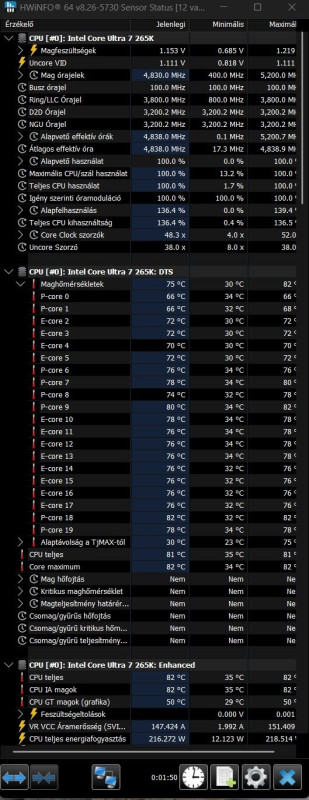 HWinfo alapján 5200 mhz volt mindkét futásban a max órajel a CPU magon.