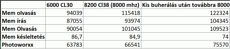 Megjött a viper extreme 2x24 gb 8200mhz cl38 ramom. Bepattintottam, felismerte xmp-ok írja 8200 mhzet, de lejebb a biosban csak ddr-8000mhz ír és ha ott feljebb akarom állítani 8200 mhz-re, akkor kikapcsolja az intel 200s boostot. Úgyhogy egyenlőre maradtam 8000nél és leteszteltem aida64-el amiket mondtál a kingston 2x32 gb 6000 cl30 rammal összevetve. Továbbá összevetettem játékokkal, de azokat csak úgyan ott kipróbálva és sztem ugyanazzal az fpssel fut, mint előtte nem igazán látok változást ezen a téren, ahogy gondoltam. Lehet very 1080 más lenne, de én úgy nem szeretek játszani. Az egész gép hasonló leszámítva, hogy benchmarkon kivűl picit több a pont. Nagy csoda így nincs, csak annyi, hogy így kevesebb a ramom.