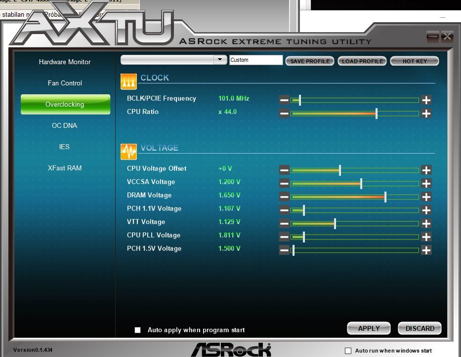 Most nem tudom újraindítani hogy bemenjek biosba de egy AXTU screenshotot tudok tolni. Semmi különösebb mókolást nem igényelt ez nálam és biztos lehetne még többet is kihozni belőle alap feszekkel ha rászánnám az időt. Ha jól emlékszem az LLC-t közepesre tettem, talán level3 azt hiszem és a feszeket auto helyett kézzel állítottam be a default értékekre, hogy ne kezdje el nekem a lap magától túllőni ahogy emelem a frekvenciát. A célom az volt, hogy az összes energiatakarékos mód megmaradjon és ehhez képest érjem el a lehető legmagasabb stabil órajelet. Nekem fontos az enrgiatakarékos üzemmód mert 80%-ban IDLE megy a gép. 44*102-t fogom kipróbálni majd legközelebb, hátha elmegy az is a jelenlegi beállításokkal.