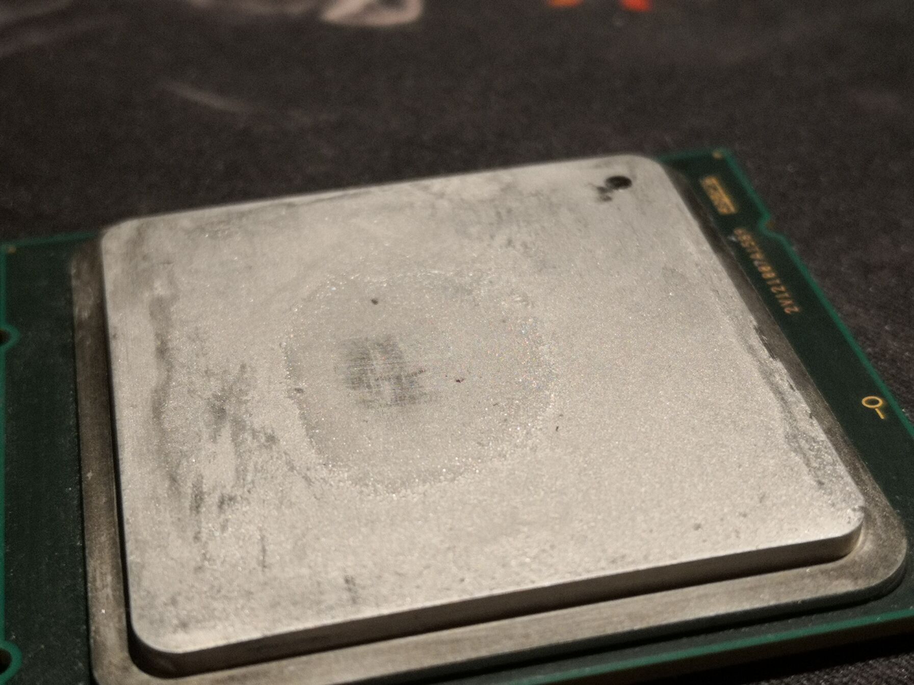 Mivel az egyik mag 6 fokkal melegebb a többinél gondoltam átpasztázom a procit, emlékszem is hogy csúnya volt, eladó szerint folyékony fémet használt, gondoltam nem jön le könnyen, de most, hogy újra akartam pasztázni és nekiálltam kontaktsprével, mikroszálassal, mindennel súrolni úgy látom le lett csiszolva, de bénán csak körben. Mi a francot kezdjek ezzel?