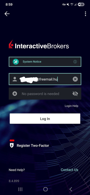 Ez a login képernyőm mobilon, nincs live/paper váltás, semmi, egyszerűen az email címmel bejön, hogy no password required, és enged belépni. Onnan az előző hsz-embe betett demo számlán vagyok.