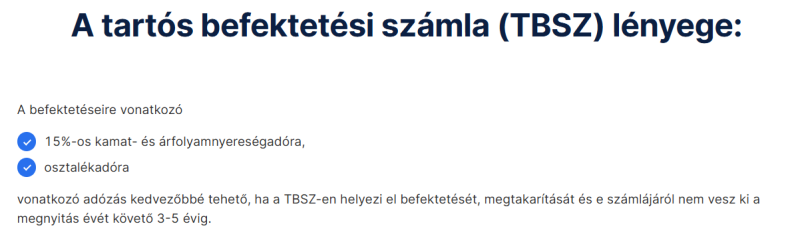 [link] "A TBSZ keretében keletkező osztalék a tartós befektetés része, ezért annak megállapításakor (jóváírásakor) nincs adófizetési kötelezettség, hanem az a TBSZ szabályai szerint a lekötési hozam sorsát osztja, azaz az 5 éves futamidőt követően a TBSZ megszűnésekor adómentes jövedelem lesz."[link]