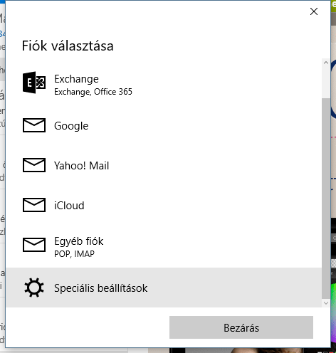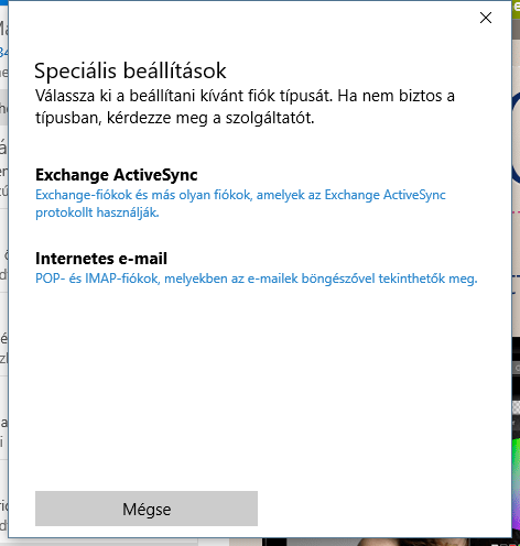 Speciális beállítások - Internetes e-mail