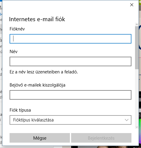 Windows 10 Posta alkalmazást használóknak segítség, az Invitel szolgáltatói elektronikus levelezési cím beállításához :