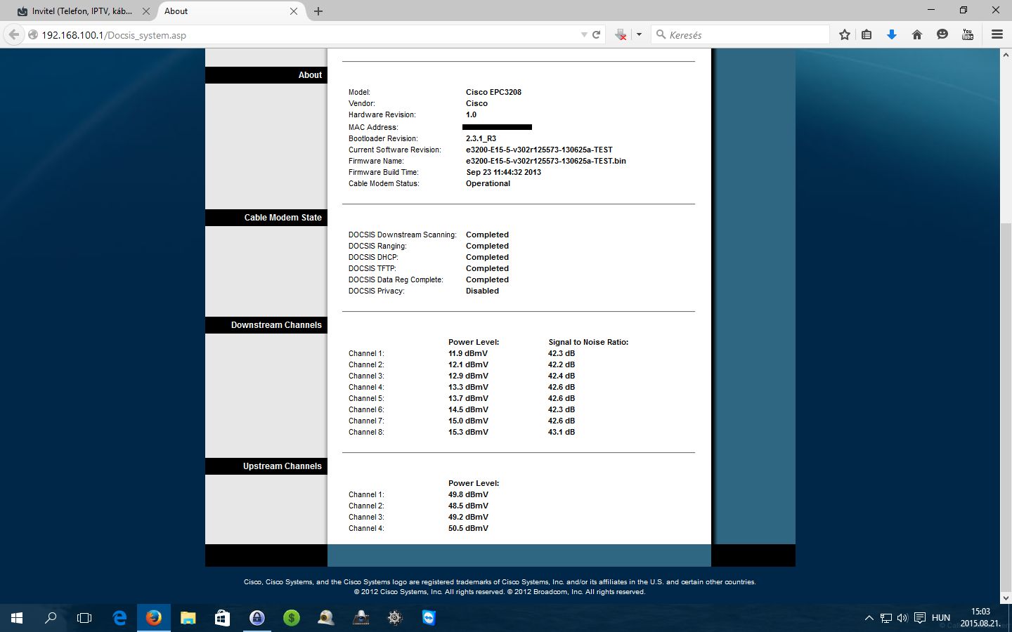 Channel 8: 33.4 dBmV 42.3 dBMost úgy sem telefonálnak