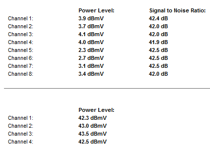 Channel 3: 35.4 dBmV 42.5 dB