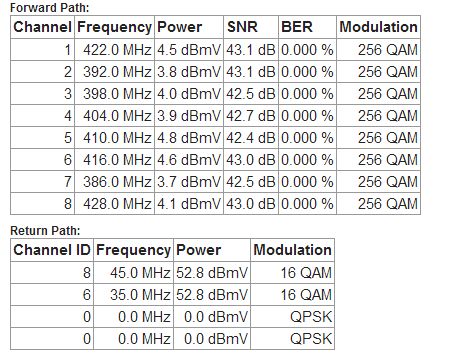 Channel 1: 35.0 dBmV 42.5 dB