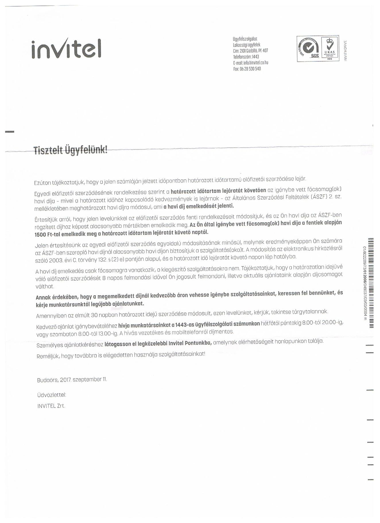 Az viszont bent van, hogy ha lejár a hűségidőd, kötelesek legalább azon az áron határozatlan idejű szerződést felajánlani.