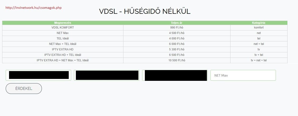 Próbáltam érdeklődni a hűségidő nélküli havi 4500-ös Net Max VDSL-ről, de azt írja, hogy: