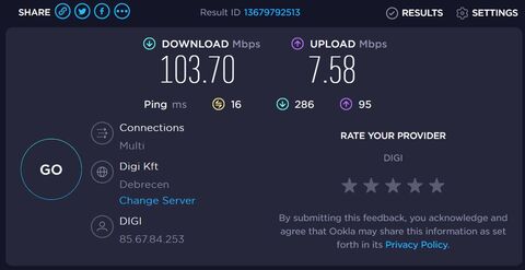 De érdekes amit mondasz, most mértem megint egy sebességmérést. Már csak 50Mbit-et mértem, szóval de, akkor itt is ugyanúgy igaz, ami nálad is.