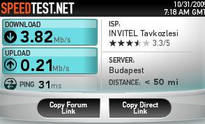 Speedtest-el voltak problémák és valamiért teljesen irreális eredményt adott, ilyennek kellett volna lennie: