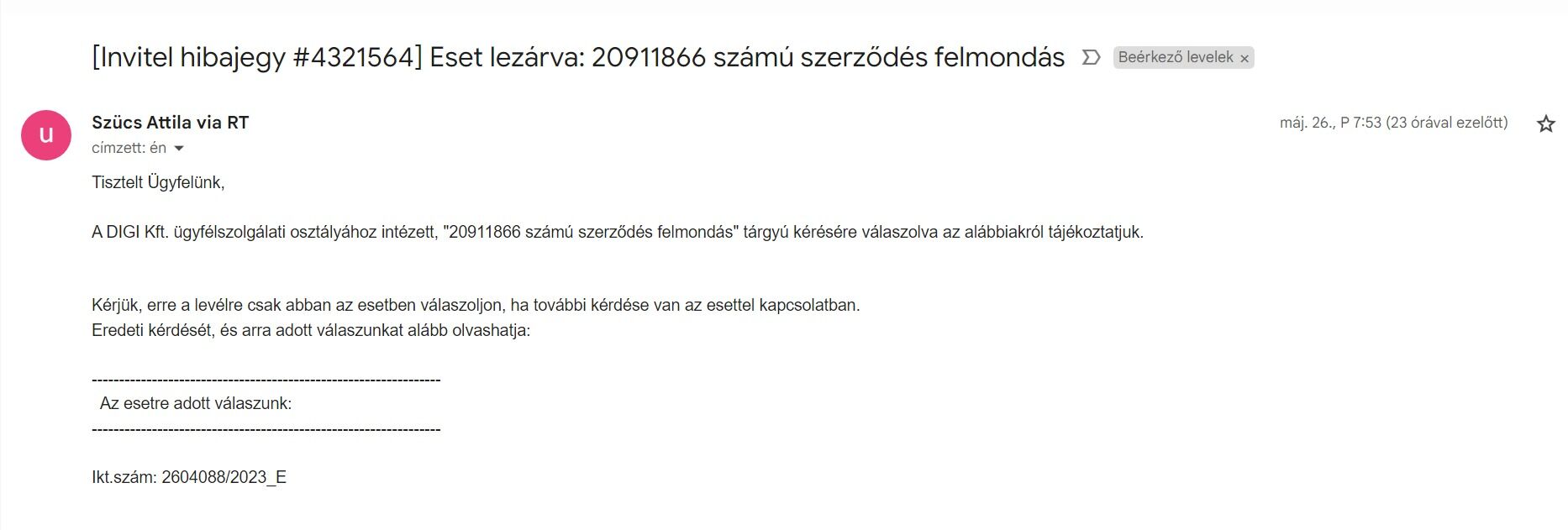 Ma volt egy hiba bejelentésem 04:30-kor.