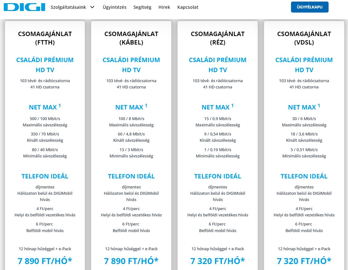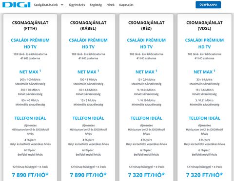 Csak nagyon indokolt esetekben emelhetik a szolgáltatók a korábbi kedvezményes díjat. Szerintem ilyen a Diginél az FTTB->FTTH átépítés ergo korszerűsítés, ahol csak az egy darab - DIGI MINDENKINEK CSOMAG
