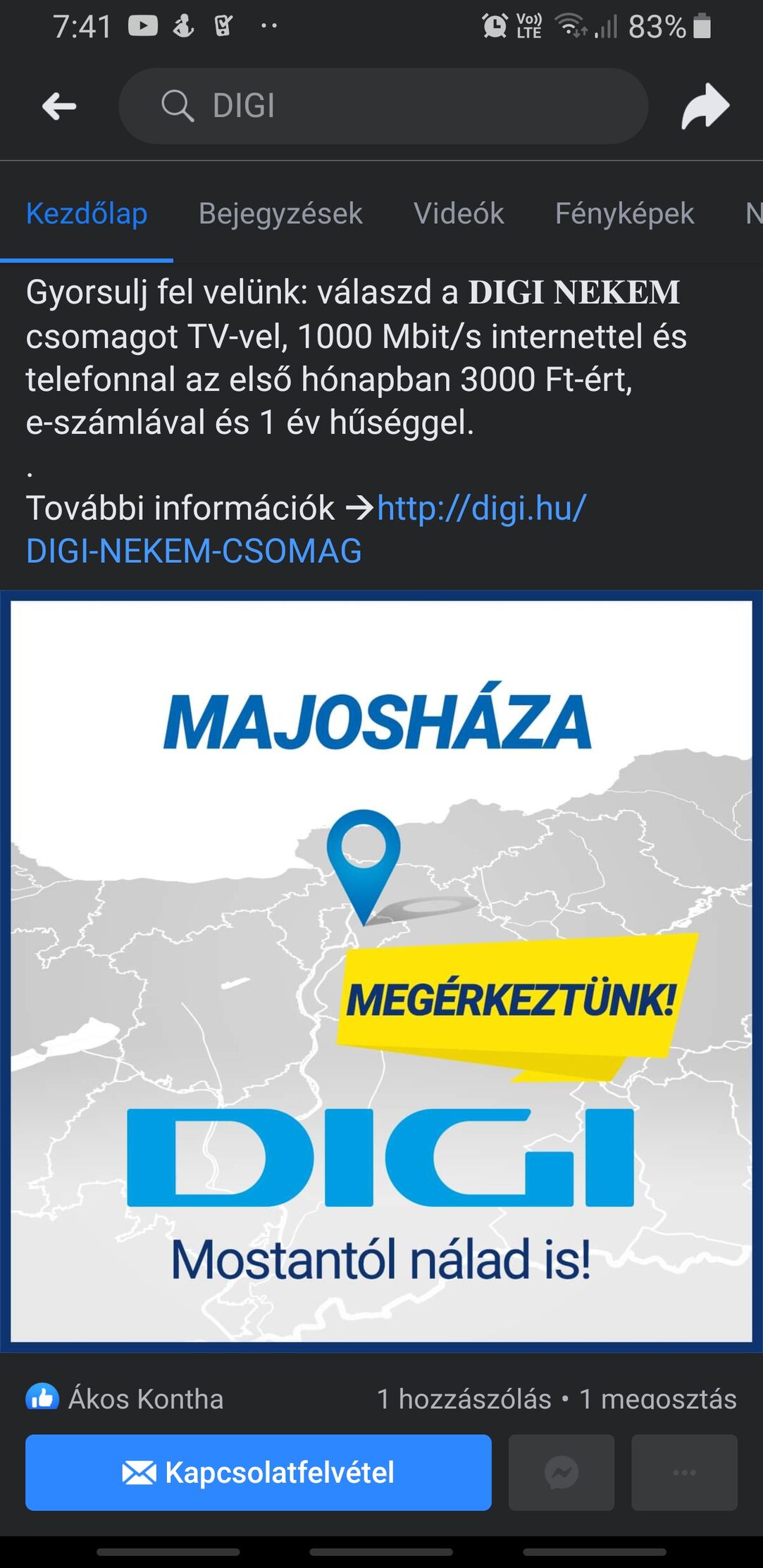 Majosházán kihúzta a Digi is és a PR-Telecom is az optikát. Ma beszéltem a digis üzletkötővel. Elméletileg a hónap végén már előfizethető lesz a szolgáltatás.