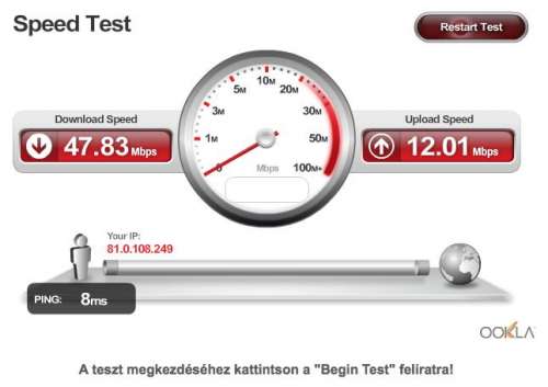Átlagos letöltési sebesség: 47.29Mbps