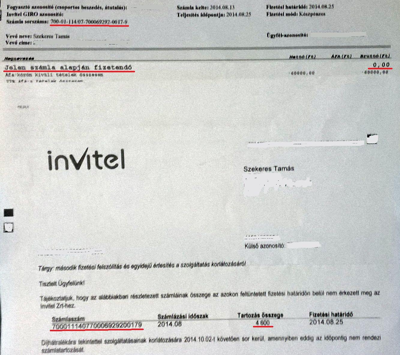 Az Invitel-nek megint sikerül alulmúlnia magát. Egy augusztusban kiállított 0.-Ft végösszegű számla alapján akar bevasalni rajtam úgy 4'600.-Ft-ot, hogy nem volt még csak csekk sem az augusztusi számla mellett. Persze amikor 0-át kell befizetnem, ez érthető is.