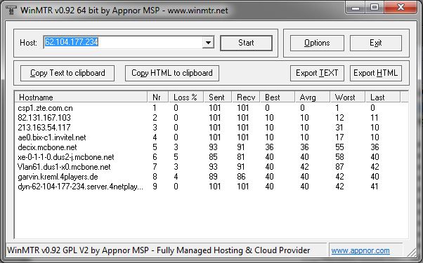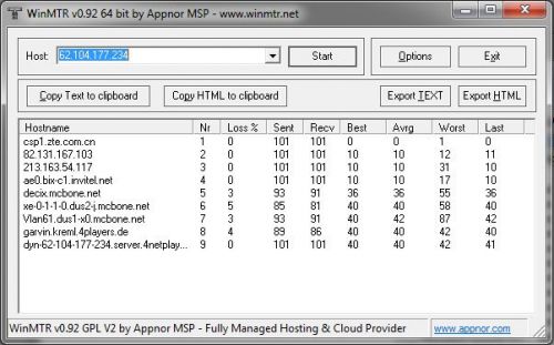 7 33 ms 0/ 100 = 0% 0/ 100 = 0% Vlan61.dus1-x0.mcbone.net [62.104.198.178]