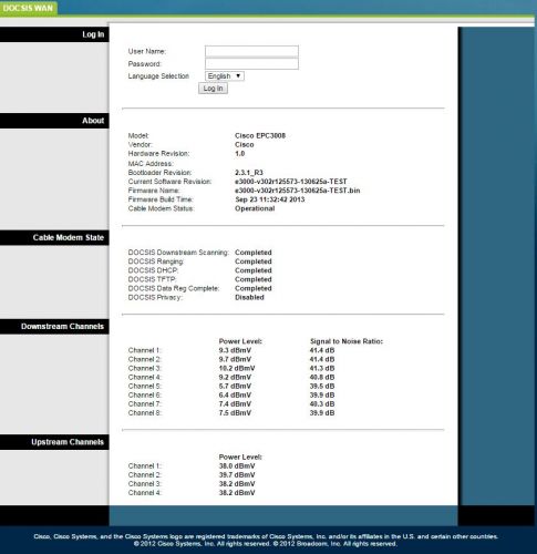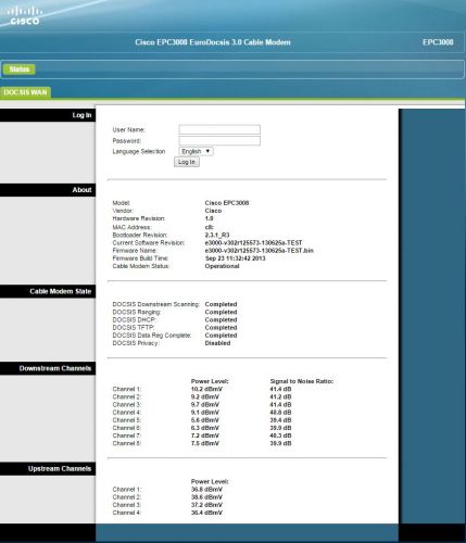 Channel 8: 18.5 dBmV 41.1 dBUpstream Channels