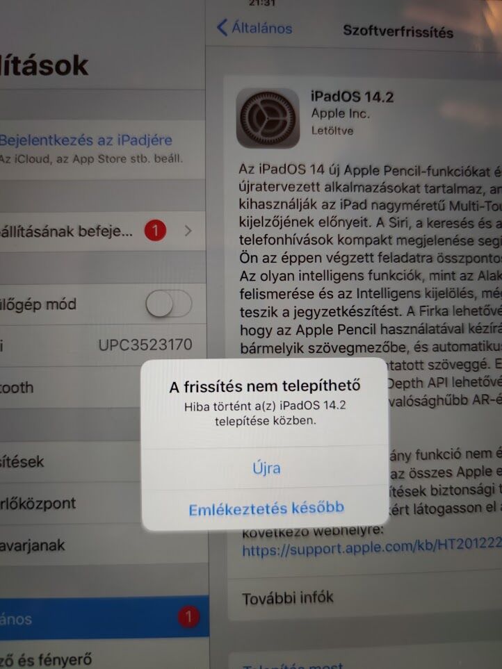 Sziasztok, most vettem meg barátom 6th gen 2018 ipadjét, és nem frissül az iOS. Letölti ellenőrzi majd kiírja, hogy nem telepíthető.