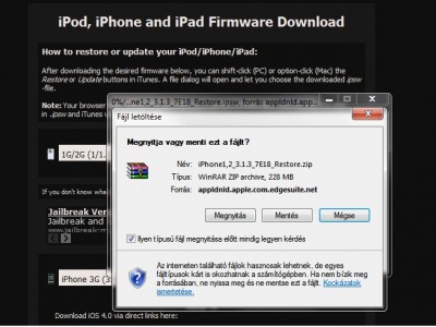 ezt a cikket olvasgatva belekezdtem,de az 5. lépésnél : Az alt/opt gombot nyomva tartva a restore gombra kattintva, lehetőség nyílik a feltöltendő firmware kiválasztására. Az iTunes jó eséllyel csak a 4-est tartotta meg, sőtt ha előzőleg bemásolta oda az ember a 3-ast már mostanra letörölte a program, ezt enyhe tiltakozásnak veszem, de ki lehet vele tolni. Ha már a megnyitásnál vagyok akkor bemásolom, finder-ben és nyitom is. (Persze gondolom máshonnan is meg lehet nyitni)