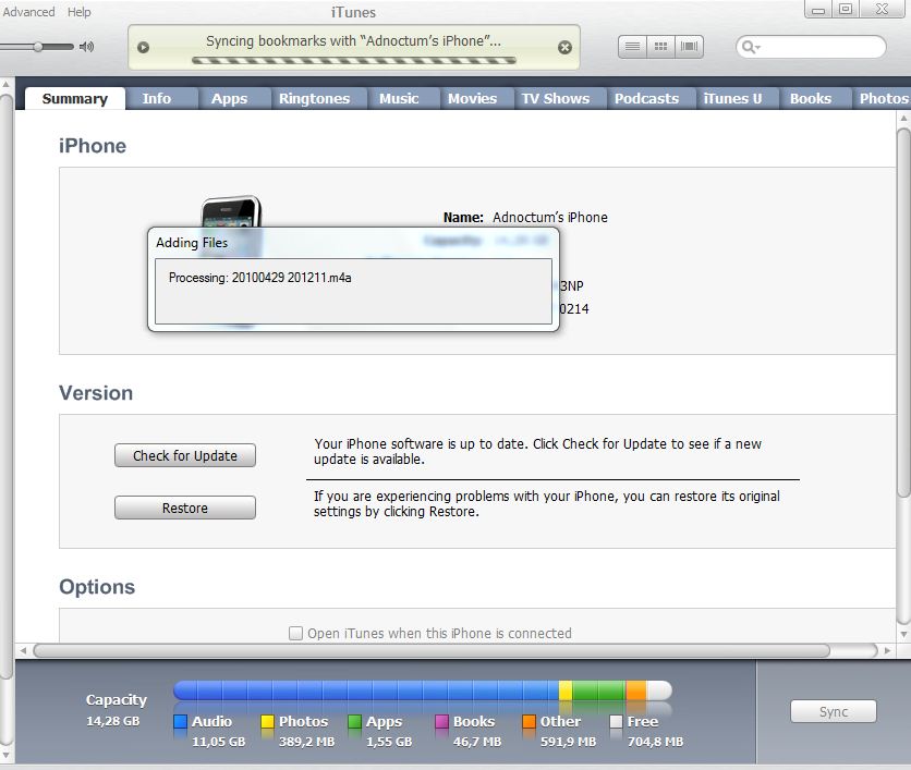 Az Itunes lefagy szinkronizálás közben a Voice memo fájloknál.