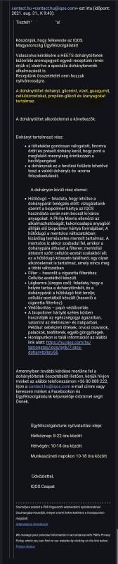 (Több AI oldalt is kérdeztem, az egyik a válaszában pl. szó szerint a te beírásodat jelölte meg forrásnak innen a fórumról. Amit én beírtam utána, azt egy másik AI oldal válaszolta és Iqos - PM - volt a forrás. Azért holnap az ügyfélszolgálatnak elküldöm, hogy "valaki" állítólag ilyen választ kapott tőlük, kíváncsi leszek a reakciójukra.) -