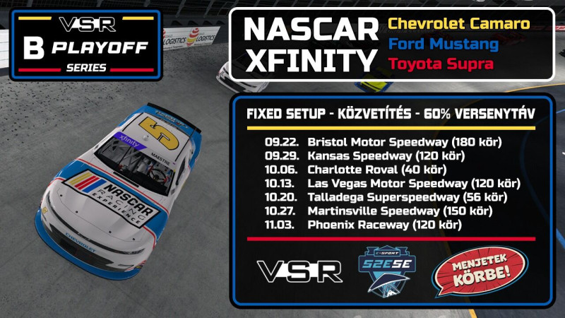 Indul a VSR NASCAR Xfinity bajnokság, amely a rájátszás menetrendjét fogja követni. Bármi kérdés van jöhet!