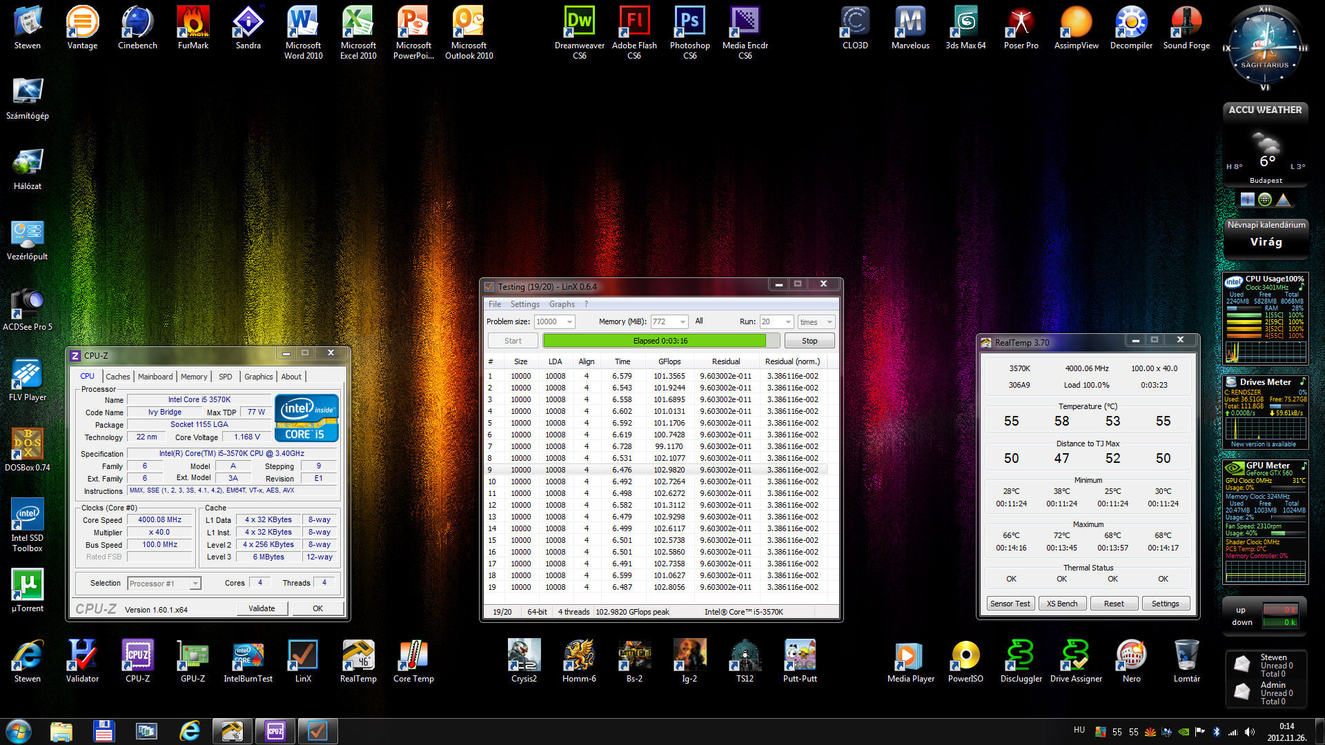 5: alap oprendszer tesztelése LINX CPU és egyébb kis segédprogik feltelepítése ami a későbbi tuningoláshoz majd kell. Sok screen shot gyártása mit is muzsikál alapon a gép hogy megismerjük a hőértékeket és egyébb pl. Gflops paramétereit.