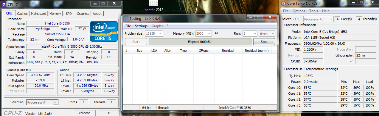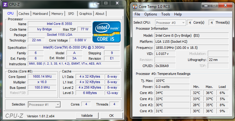 Ma raktam össze a gépet. I5-3550... Hyper tx2-es hűtőt raktam rá, ami volt az E8400-asomon. Alapon 39, 100%-on 60 fokos. Jah és mx4-es hűtőpasztát raktam rá.