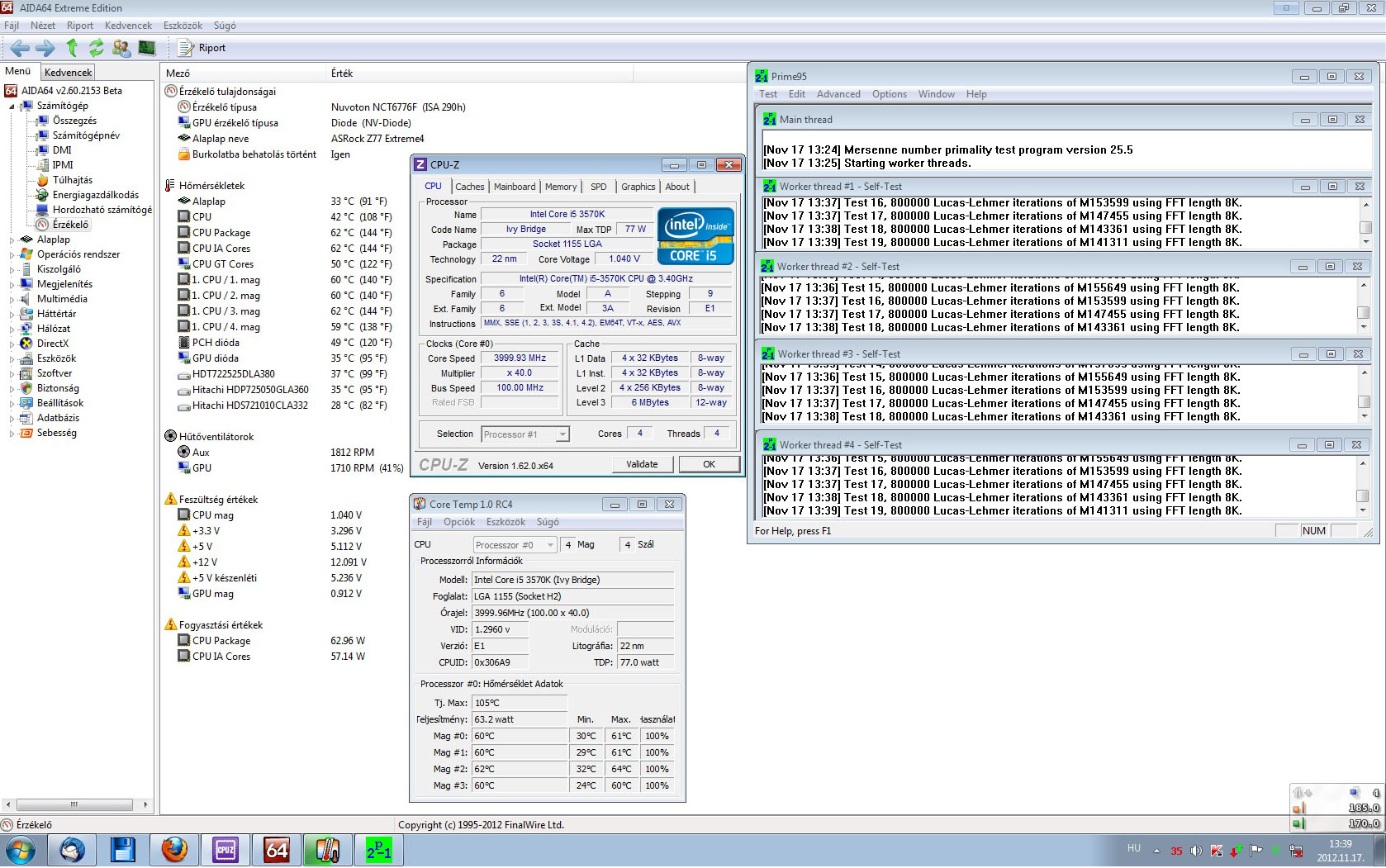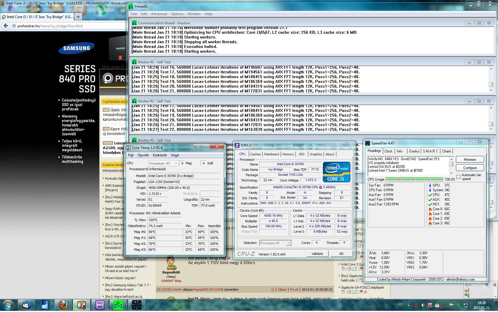 A proci minden esetben 4ghz-en ketyegett, tízpercig terhelve Prime95 segítségével.