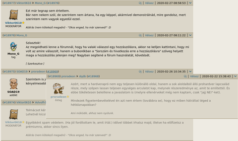 Nem lehetne megoldani, hogy a régebbi - már nem szerkeszthető - hozzászólásokban ott maradna az akkori?