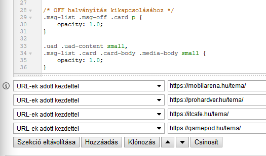 (bár androidon - #21701-re írom - trükkös a dolog, mert ott a Firefoxhoz csak kiajánlott kiegészítők telepíthetők, amik száma korlátozott, de ha régi verziót telepítünk fel elsőnek APK-ból, arra telepíteni lehet a Stylust, beállításaira van export/import funkció, majd Play Store update az aktuális böngészőre, és ez a kiegészítő megmarad)a reszponzív felületen ennyi szükséges:
