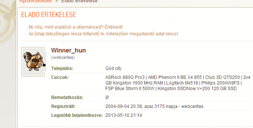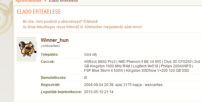 Ha Hardverapróról van szó, akkor szándékosan nem jeleníti meg a közvetlen kapcsolatteremtési lehetőségeket. Ennek biztonsági okai vannak, hogy egy esetleges nyomozás esetén mindenképpen legyen nyoma a kapcsolat felvételnek (egy hozzászólás, egy privát üzenet).