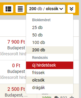 A megjelent találatok sorban: