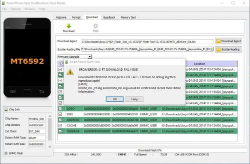 1. Kapcsolatot tud teremteni az SP Flash és a telefon akkumulátor nélkül. A probléma, mikor felakarok tenni egy új romot, a download-nál, meg sem moccan a % értéke és egy után hibát ír ki az SP Flash.
