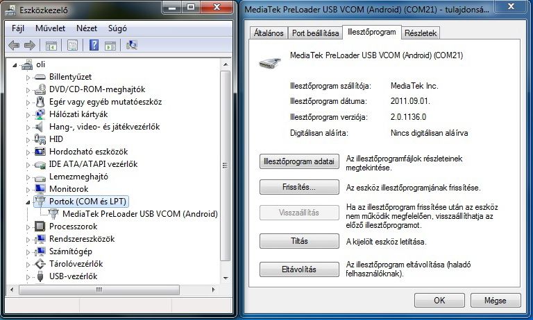 Ha továbbra is ezt az USB Serial Device-t erőlteti, akkor Jobbklikk -> Tulajdonságok -> Illesztőprogram -> Frissítés -> Illesztőprogramok keresése a számítógépen -> Választás a számítógépen található illesztőprogram-listából -> Saját Lemez -> és be kell neki tallózni a megfelelő drivert. A digitális aláírás ellenőrzését ki kell kapcsolnod megint, meg szerintem mindig ha a telefonnal kell babrálni SP Flash Toollal. Lehet a Win8/8.1 alapból letiltja ezeket az illesztőprogramokat ha nincs kikapcsolva az ellenőrzés.