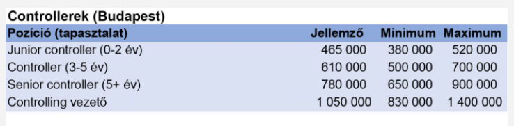 Mit gondoltok mennyit lehet keresni IT controllerként (tapasztalat függvényében)?