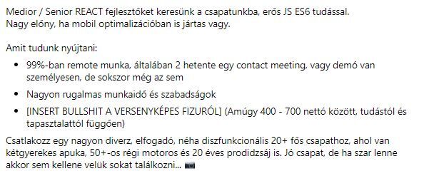Recruiter, 4 év szakmai tapasztalattal java full stack seniornak keresnek embert. Kértem egy bérsávot, mit tudnának adni, erre csak első és második kör utána mondana egyáltalán sávot...