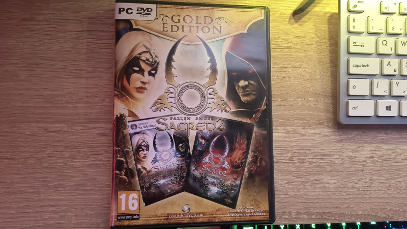 Szóval - már nem emlékszem, honnan és ki - de valaki megszerezte nekem kintről az eredeti angol Sacred 2 Gold Editiont, így lett meg végül eredetiben a játék. Akkor még nem volt Steam fiókom, se bankkártyám, amivel online rendelni tudtam volna, ezért máshogy nem juthattam hozzá. Ezért a mai napig őrzöm a DVD-t, mert, bár már csak a port gyűjti a polcon, de a Sacred 2 egyike volt azon kevés játékoknak, amiket akkoriban megvettem.