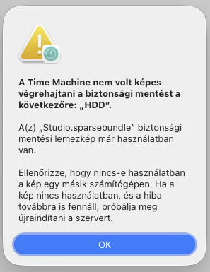 Esetemben egy új TM mentés indulna és a frissen létrehozott sparsebundle fájlba nem képes beleírni...