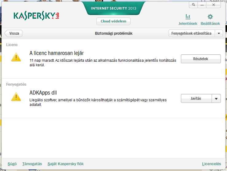 Úgy tervezem, köszi. Bevallom nagyon sokáig warez verziókat használtam, még a 2010-es változatból is. Viszont mivel folyamatosan lefülelték az illegális regisztrációkat, és ki tudja milyen biztonsági rés keletkezett azzal, hogy nem legális verziót használok, így mostanra betelt a pohár. Azt hittem sokkal drágább mulatság, de ennyi pénzt bőven megér 1 évre a teljes körű védelem.