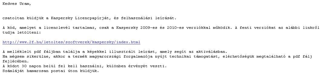 Nem kell telepítened a KAV 2010-est, ha nem akarod. Én is most hosszabítottam meg a KAV 2010-esem licencét, a licenclevélben világosan le van írva, hogy az aktiválókód a Kaspersky Anti-Vírus mindegyik pillanatnyilag támogatott verziójára érvényes. Tehát a 2009-eshez és természetesen a 2010-hez is jó.