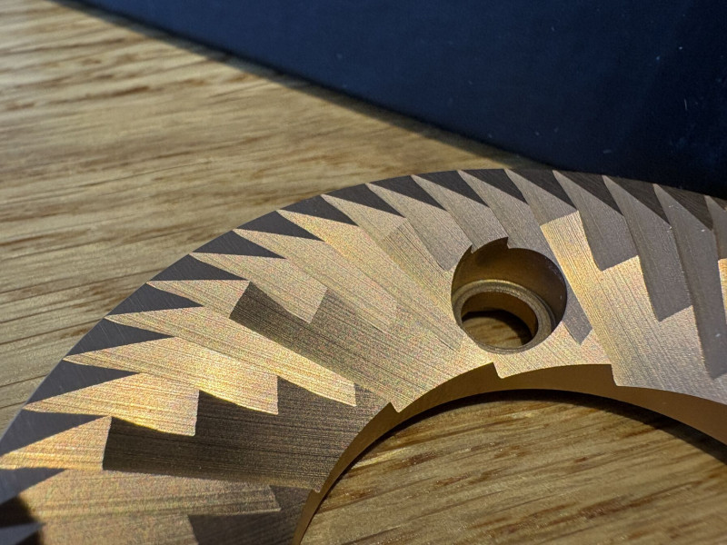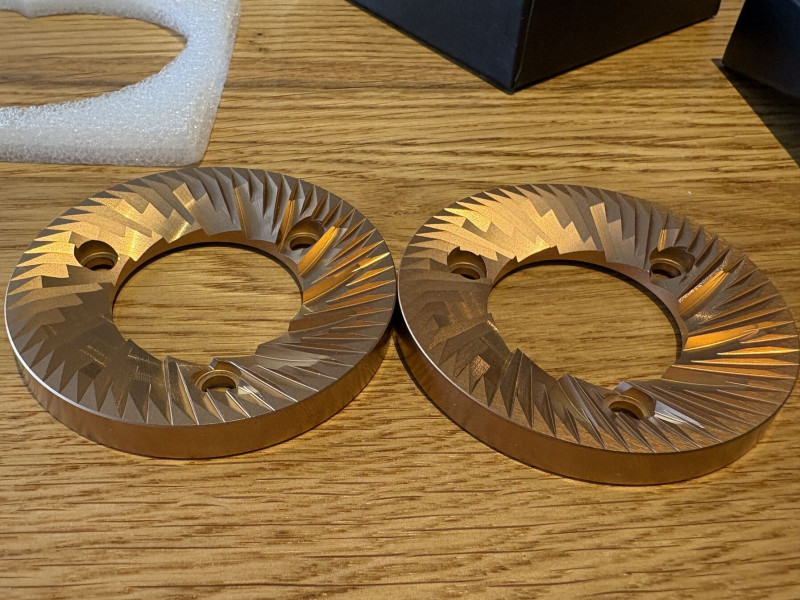 Ha kialakították az éleket mondjuk és összeborogatták őket és úgy zötyögtek velük másik állomásra, akkor össze verhették egymást. Majd lesíkolták őket és a végük ezáltal rendben van. Ez csak egy esetleges forgatókönyv. Az viszont biztos, hogy szégyen ahogy kinéz. Ha az lenne a dizájn, hogy tompa a belső él azt nem elverik vagy lereszelik kézben. Géppel alakítják ki olyanra, szépen. A bevonatolás a legkevesebb ebben a gyártásban. Könnyen lehet, hogy valami harmad osztályú jó lesz valakinek kések. Csak itt eladták gyárinak.Azért van így kialakítva a két-három furat, mert így egyszerű a felhasználóknak. Könnyen cserélhetőek a kések. A felület ami kiesik ezáltal a profilból vállalható veszteség. Vannak már kések amelyek alulról rögzülnek, csak ahhoz bonyolultabb kialakítás szükséges őrlő részről. Otthoni környezetben ezt kifizetik és nem számít abban a szegmensben. Viszont a kávézóban nem örülnének, ha le kellene mondjuk húzni az alsó késtartókat a Mazzerokról egy cseréhez.