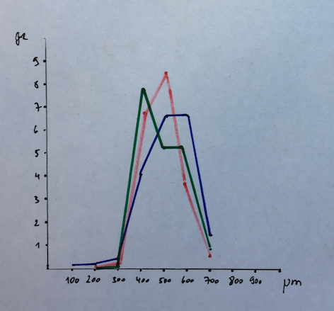 Igen én is azt néztem hogy ez szemcseméret analízis szempontból nem egy precízen kalibrálható műszer a maga 250-300mikronos lépésközeivel, ami jó esetben pont egy őrlemény teljes spektruma kellene hogy legyen.Talán az is baj, hogy nincs megfelelően szétszedve az őrlemény. Tehát az összetapadt göbök becsapják a műszert, ami azt hiszi hogy azok nagy szemcsék. Talán ezért van ilyen széles spektrum szinte az összes mérési eredménynél. Bélának is megírtam a FBon, hátha ez utóbbin még tud finomítani. Egy ecsettel szét lehet szépen szedni.