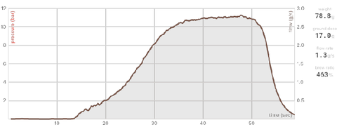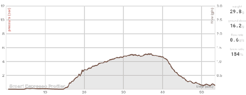 Normális őrlő, alacsony hőfok, magas, de lapos flowrate, világos pörkölés -> nagy eséllyel finom kávé.